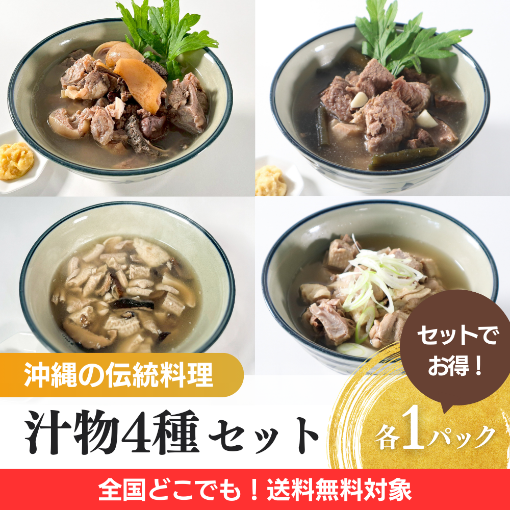 お試しオリジナル汁物4種セット(山羊汁・牛汁・中味汁・アヒル汁)